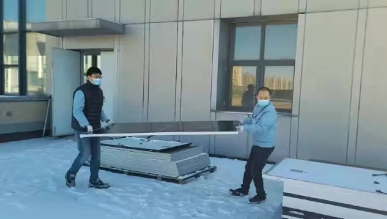 電科能源(18所)檢測中心職工不畏風(fēng)雪搶抓任務(wù)進度,面對客戶希望將電站組件送樣進行戶外性能和老化測試的要求,檢測中心骨干黨員身體力行,帶領(lǐng)團隊頂風(fēng)冒雪,爭分奪秒進行戶外測試。